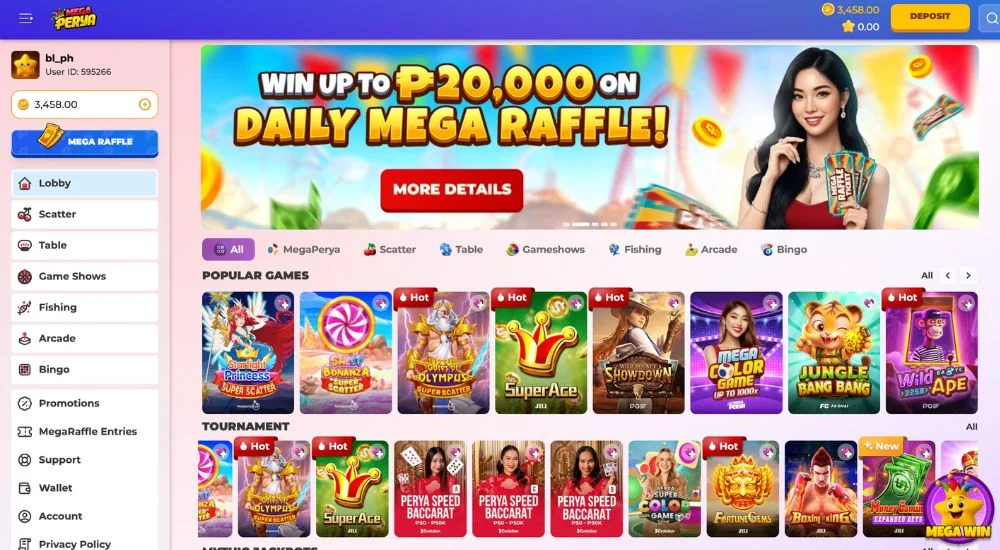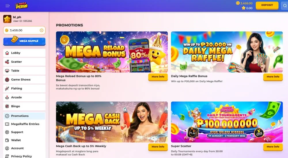 With low minimum deposits and trusted local payment options, MegaPerya makes funding your account quick and convenient.